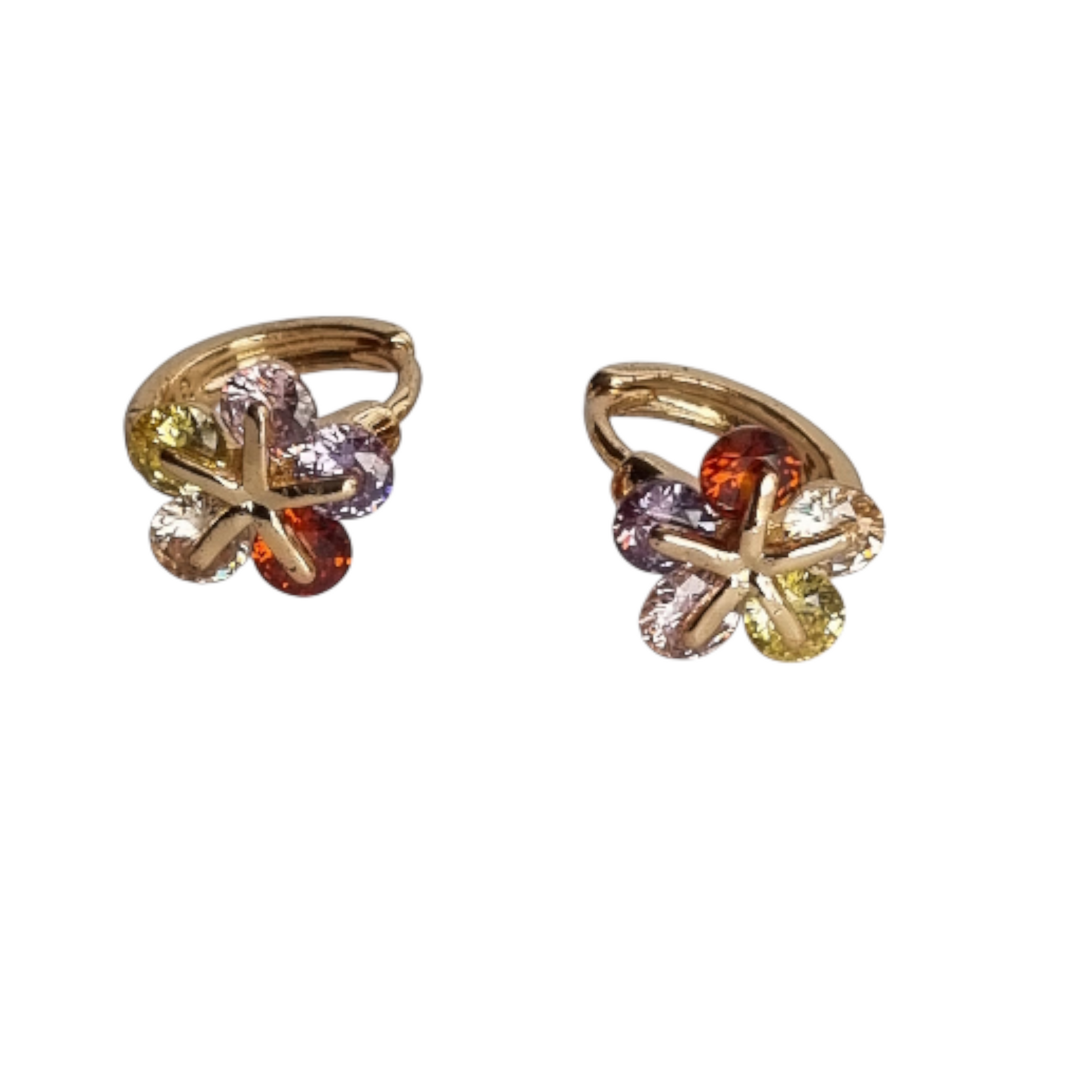 Arracadas con diseño floral inspirado en trébol y cristales multicolor